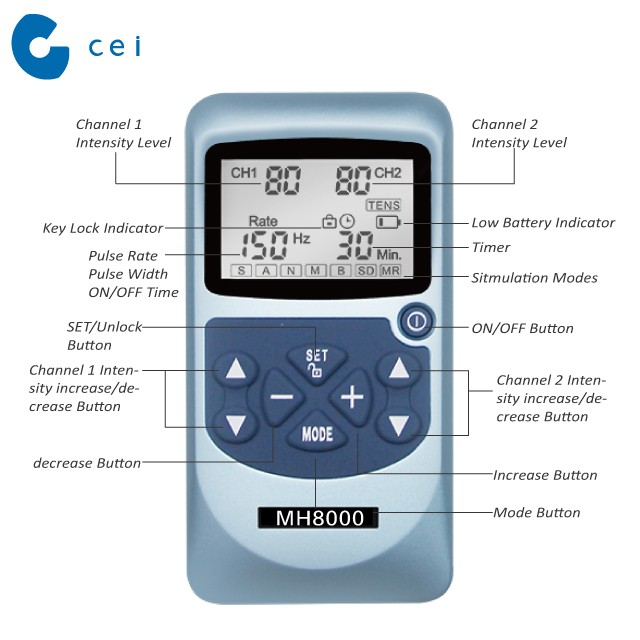 MH8000 TENS EMS Combo integrates EMS and TENS functions with 7 treatment modes. This unit is a hybrid stimulator which can be used for muscle stimulation and pain relief. The compact design of MH8000 makes it easily to carry. Users are able to use the device anywhere at anytime.
