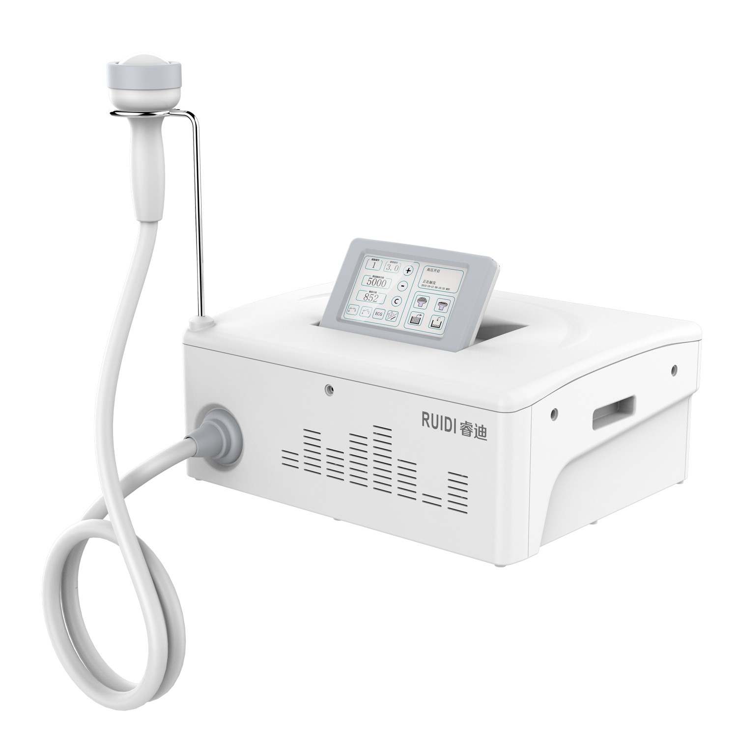 - Intuitive full touch screen operation , can easily change the treatment depth, frequency and energy